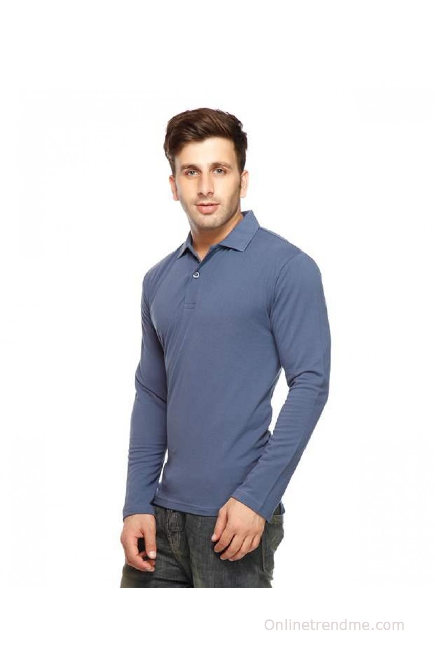 Gritstones Blue Full Sleeves Polo T Shirt