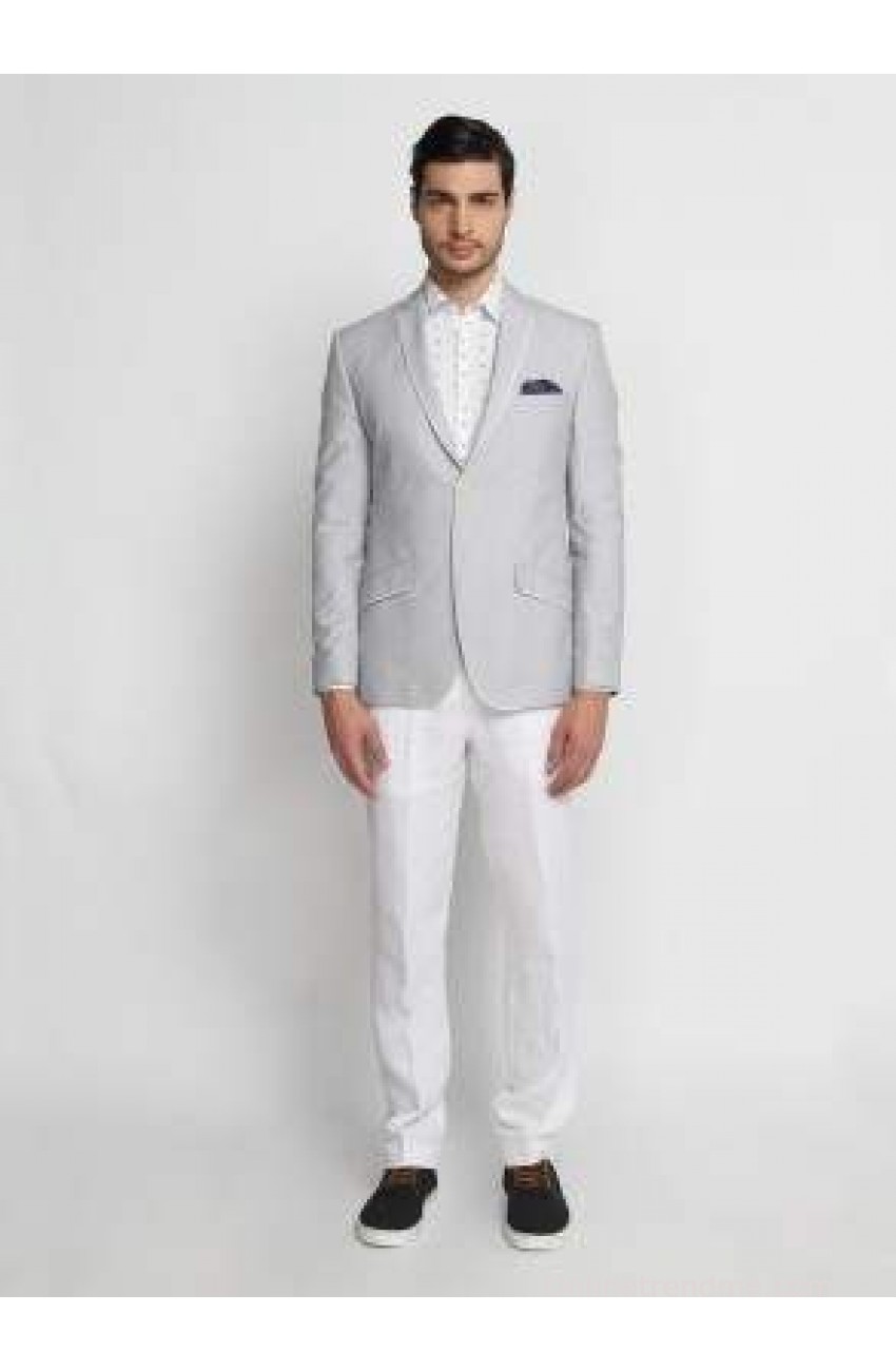 *White stripe cotton *Narrow notched lapels, sham-buttoned cuffs,chest pocket, two slant double-welt pockets, side vents, three internal pockets, floating three-ply chest piece *Lining: fully lined to match *Two-button fastening * 100% cotton; dry clean only *In-built pocket square, matching urea b...View More