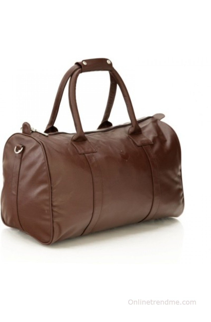 Mboss Sleek Faux leather Unisex Brown Small Travel Bag - Medium(Brown)